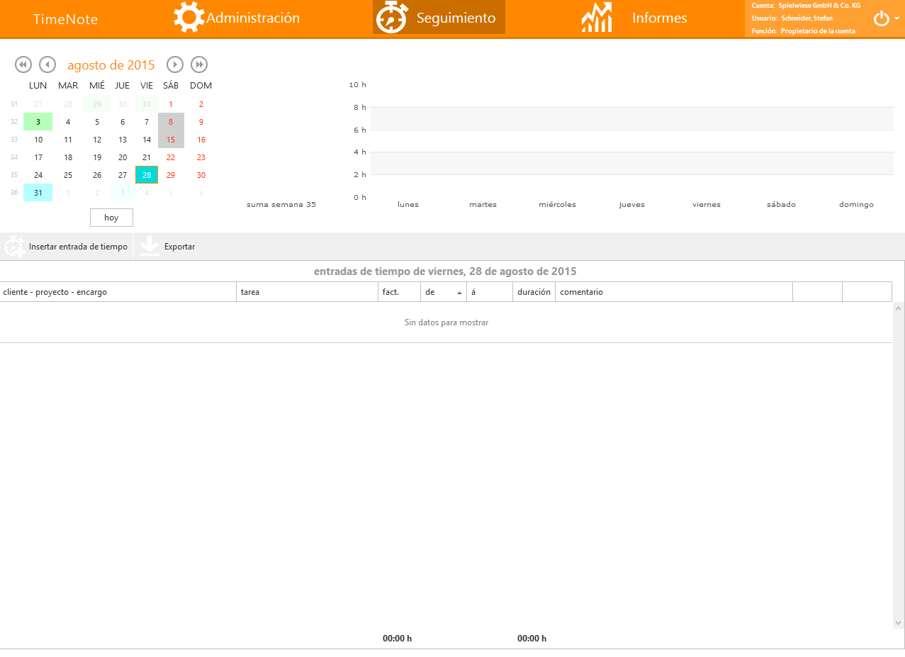 Definido como "el rastreador de tiempo" empleado entra en sus horas de trabajo mediante la introducción de inicio y fin o la duración de los trabajos realizados en la máscara y un proyecto, así como, posiblemente, un orden específico asigna.